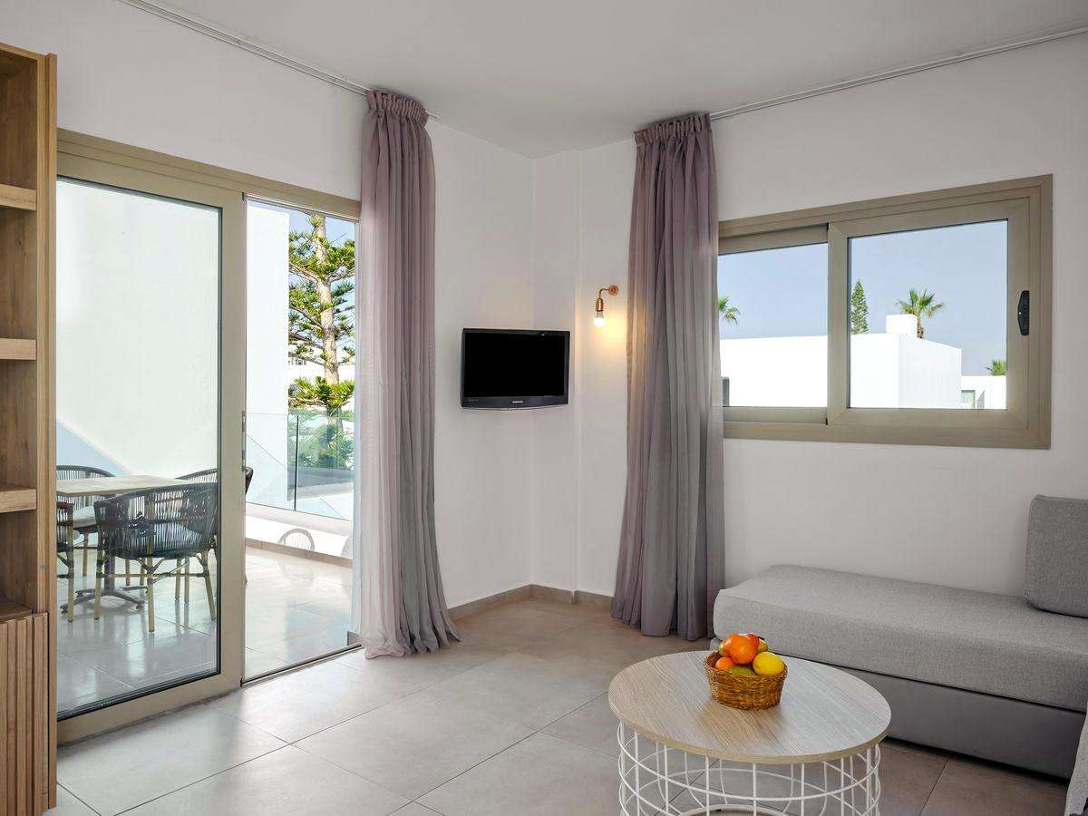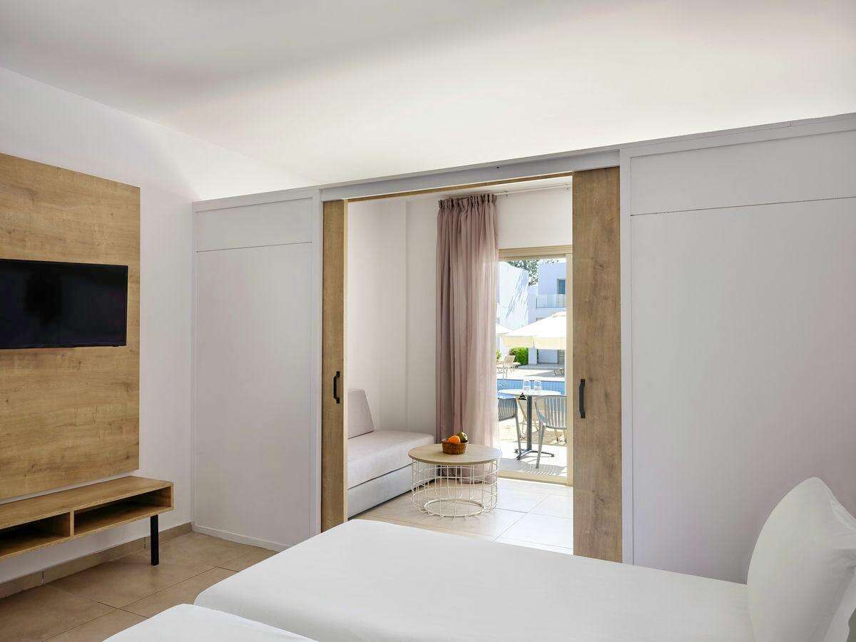 Szobák: minden szoba (~20m2) és családi szoba (~30m2) a kerti épületekben található, letisztult, világos színvilágú, ízlésesen berendezett, fürdőszobás, légkondicionáló berendezéssel, hajszárítóval, hűtővel, tea és kávéfőzővel, síkképernyős tv-vel, telefonnal felszerelt. Szobaszéf térítés ellenében bérelhető. A családi szobák nagyobb alapterületűek, a szobákban egy tolóajtóval elválasztható belső tér található, amely ideális gyermekekkel érkező családok számára (kanapéval). A szobákhoz erkély vagy terasz tartozik, szárazföldi vagy medencére néző kilátással.