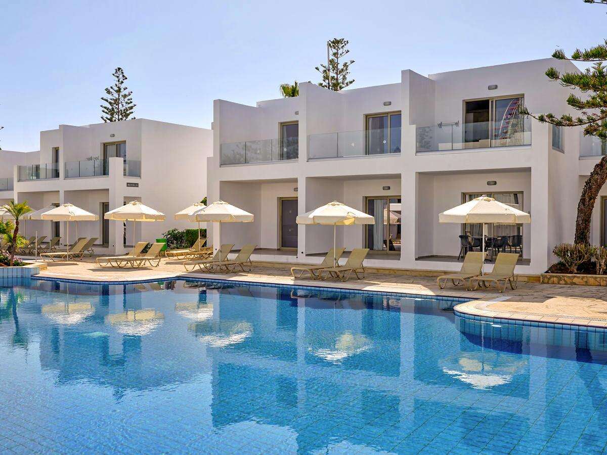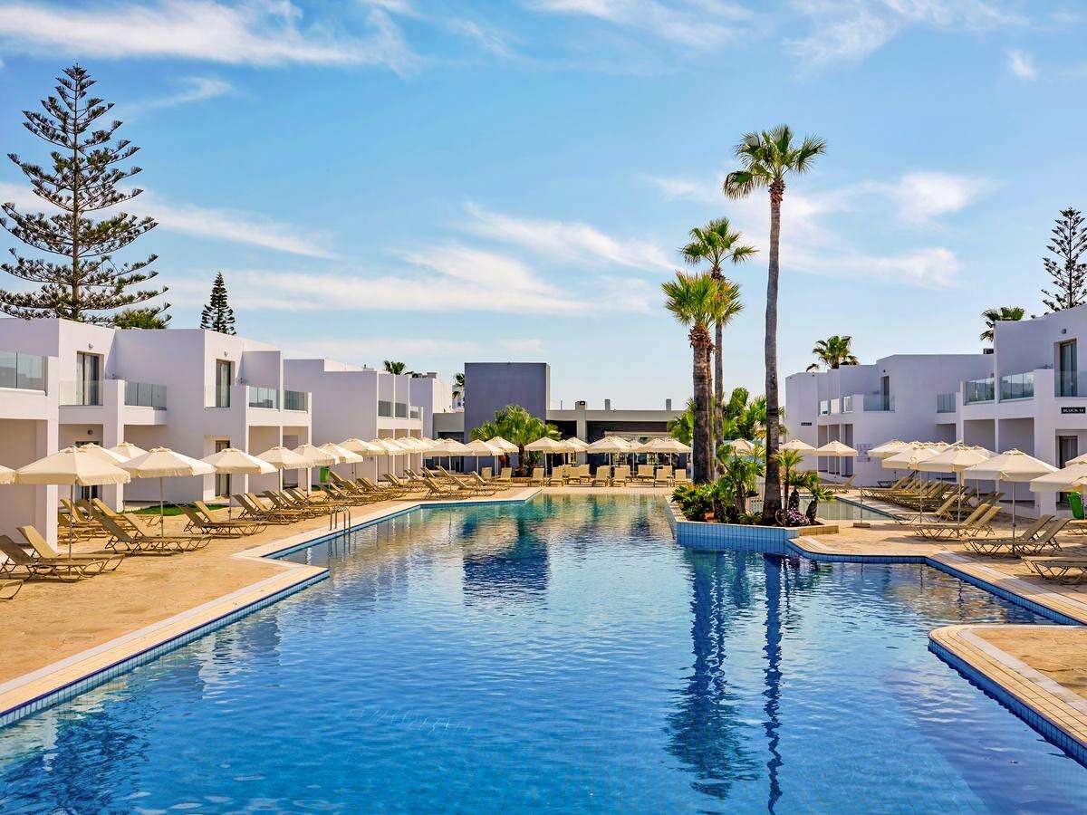Fekvése: Ayia Napa szívében, városközpont közvetlen közelében található, az Atlantica Hotellánc legújabb 281 szobás, görög falu jellegű, több tucat villaépületből álló „A” kategóriás (legmagasabb besorolás) üdülőkomplexuma, szépen gondozott kerttel rendelkezik, a több kilométer hosszú tengerparti sétány és a kikötő közelében épült. A legközelebbi strand (homokos parton, Loukkos Mandi Beach) 400 méternyire, városközponti homokos strandtól (Okeanos/Limanaki Beach) pedig 10 perc sétányira (kb. 900 m) fekszik. A képeslapokról ismert, fehérhomokos Nissi Beach (3km) taxival vagy tömegközlekedéssel is könnyedén elérhető (hétköznapokon, buszmegálló a közelben, jegyár kb. 1.50 eur). Az