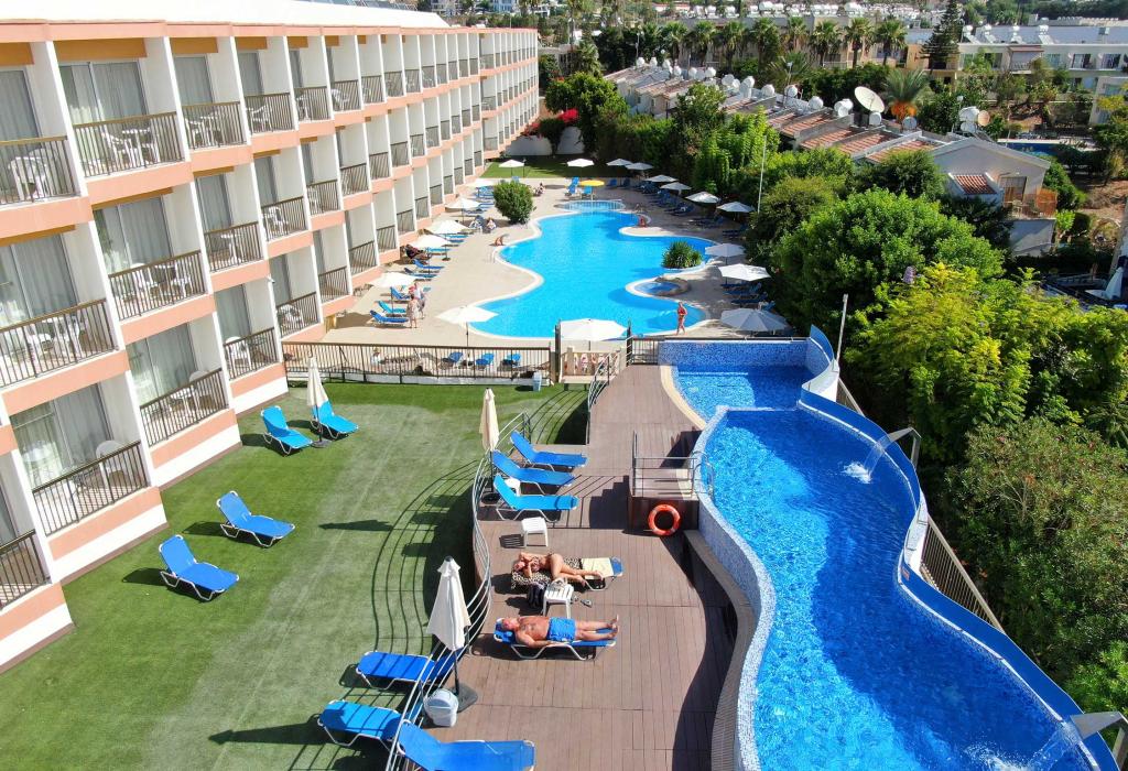 Fekvése: Paphos üdülőövezeti, Chloraka elnevezésű részén, a Coral beach Hotel közelében, a főút mentén épült, régebbi építésű, kettőszáz szobás, legutóbb 2019-ben felújított szálloda. A szálloda közelében (kb. 550m) található a környék egyik legszebb természetes homokos strandja, illetve a közvetlen közelben (szomszédos terület) a Királysírok archeológiai park található (belépés díj ellenében). Paphos városközpontja és a kikötő 5 km-re fekszik. A térség legszebb strandjai a Coral Bay-en kb. 7 km-re (taxival ~10 euró) találhatók. Buszmegálló a szálloda előtt (a buszjegy ára a városközpontba vagy a Coral Bay-re egyaránt kb. 1,50 euró).