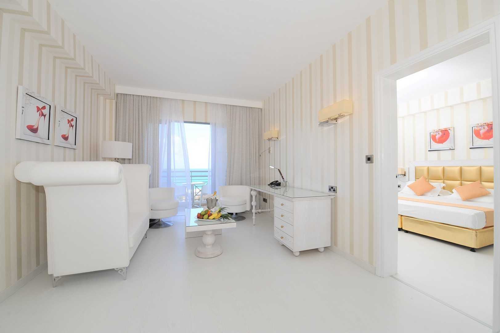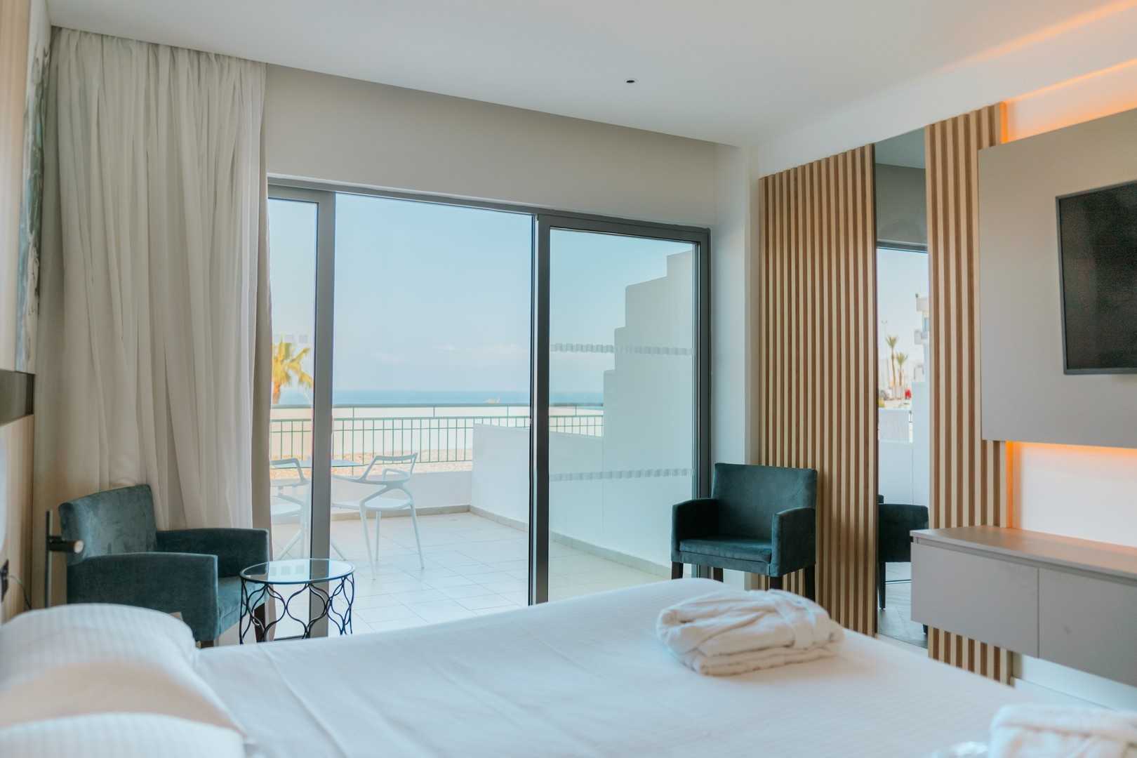 Szobák: minden szoba modern berendezéssel és dekorációval, egyszobás (kb. 23 m2), légkondicionált, fürdőszobás (fürdőköntös, papucs), síkképernyős tv-vel, telefonnal, vízforralóval (kávé-, teakészítése lehetőség), telefonnal és minihűtővel és szobaszéffel felszerelt.A deluxe szobák hasonlóan berendezettek, előnyösebb elhelyezkedésűek, szobákhoz nagyobb erkély tartozik illetve a szobákban kapszulás kávéfőző is található. Minden szobához erkély tartozik szárazföldre, oldal tengerre néző vagy tengerre és medencére néző kilátással.