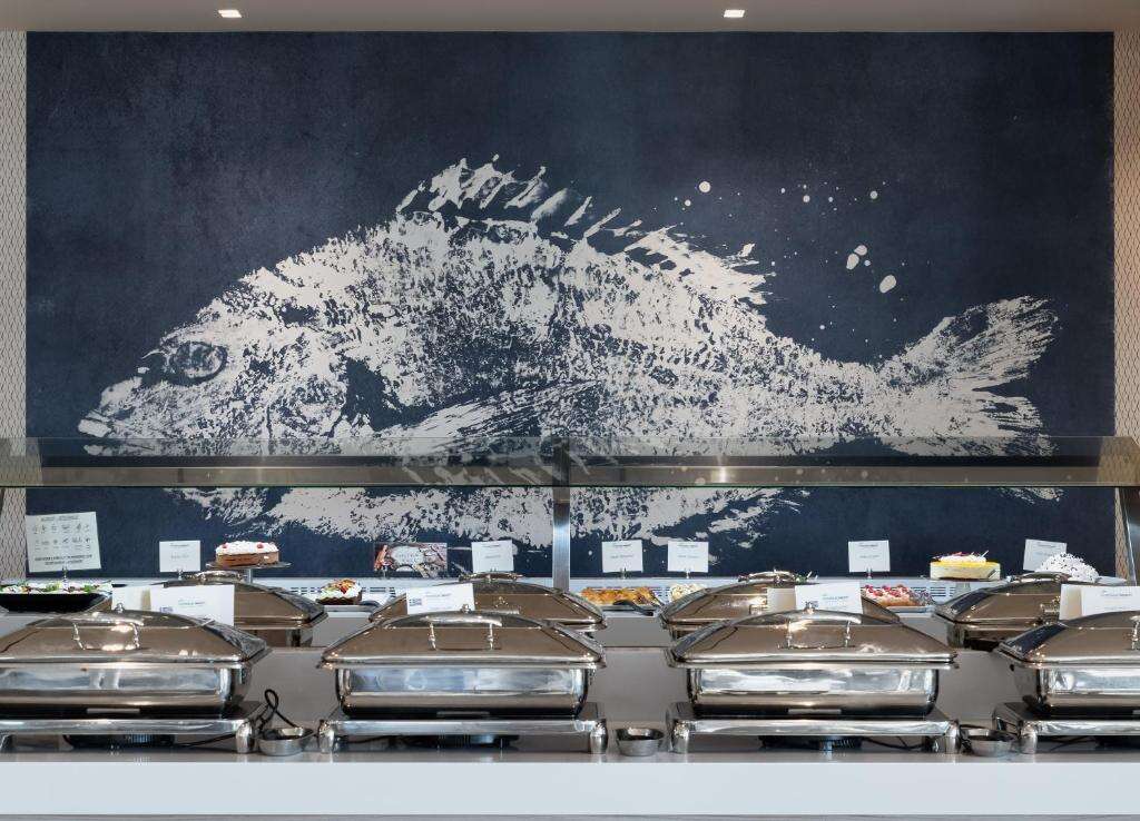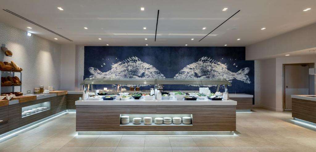 Az ellátás all-inclusive rendszerű, amely tartalmazza a büfé jellegű reggelit, ebédet és vacsorát, valamint napközbeni snackeket és helyi alkoholos és alkoholmentes italokat a kijelölt bárokban. A főétterem nemzetközi és görög specialitásokat kínál.