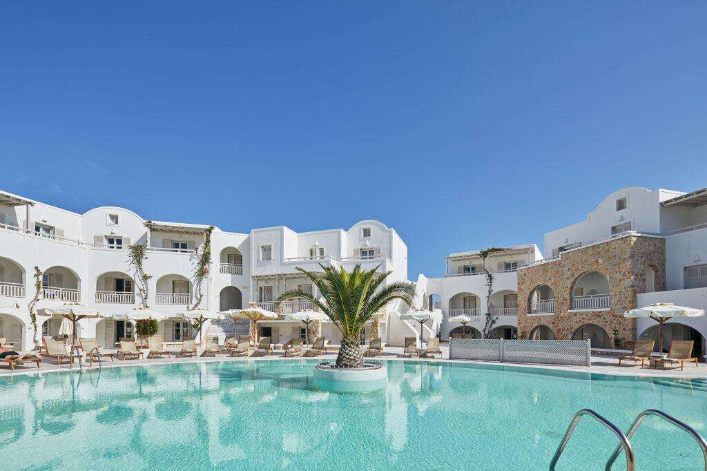 Elegáns, mediterrán stílusú szálloda Santorini keleti partján, Kamariban található. A fehér és pasztellszínekben pompázó épületegyüttes gondozott belső udvarokkal és medencékkel várja vendégeit. A hotel kellemes, nyugodt légkört biztosít, így ideális választás párok és családok számára egyaránt, akik a tengerpart közelségét és a kényelmes szolgáltatásokat keresik.