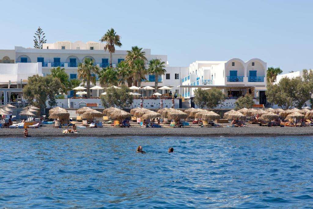 A strandon szezonálisan számos vízi sportolási lehetőség érhető el, például jetski, banánhajó, parasailing és kajakozás, amelyeket helyi szolgáltatók kínálnak. A környék kiváló lehetőséget biztosít sétákra a tengerparti sétányon, valamint kirándulásokra Santorini különleges vulkanikus tájain. A medence és a napozóterasz kényelmes alternatívát jelent azok számára, akik inkább a hotel területén szeretnének pihenni.
