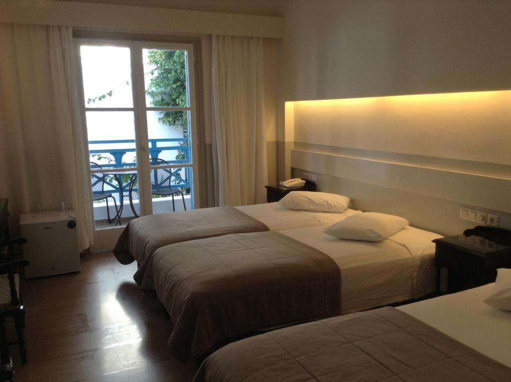 A Kamari Beach Hotel világos, mediterrán stílusban berendezett, légkondicionált szobákat kínál, amelyek saját fürdőszobával rendelkeznek. A szobák felszereltségéhez televízió, hűtőszekrény, széf és ingyenes Wi-Fi-hozzáférés tartozik. A legtöbb szobához erkély vagy terasz kapcsolódik, ahonnan kilátás nyílhat a tengerre, a medencére vagy a környező hegyvidéki tájra. A szobák kialakítása kényelmes elhelyezést biztosít párok, családok vagy kisebb baráti társaságok számára is.