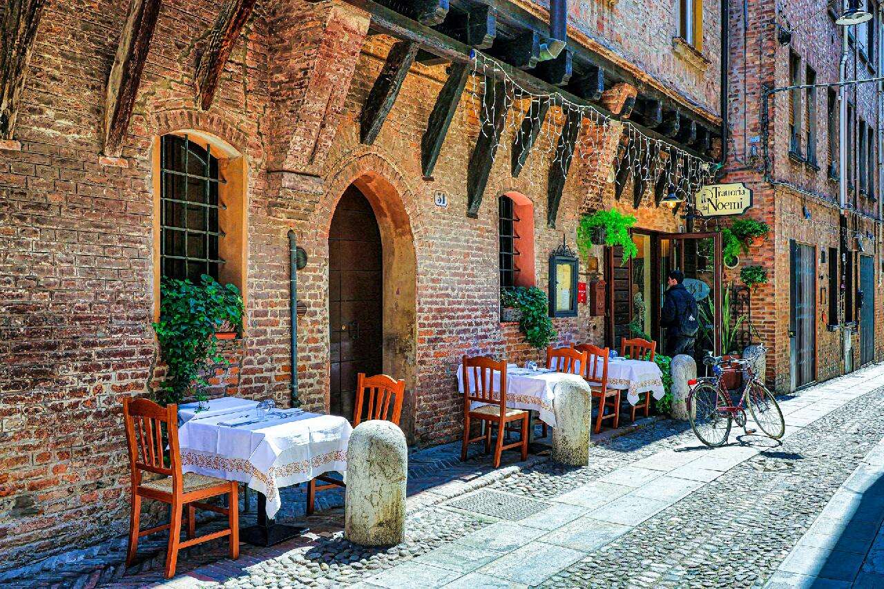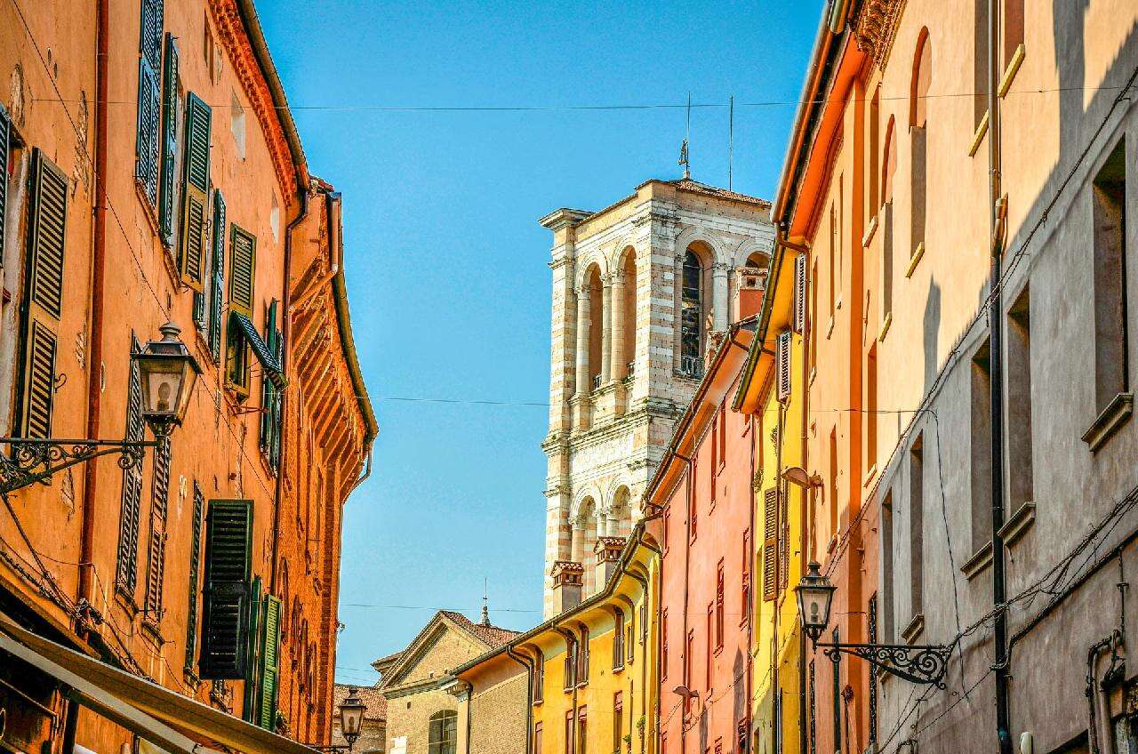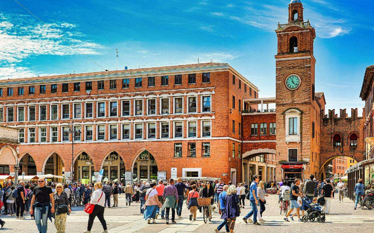 Ferrara egy nyugodt, elegáns hangulatú reneszánsz város, ahol a történelem és a mindennapi élet harmonikusan fonódik össze. A városnézés során a történelmi belvárosba érkezve már messziről feltűnik a város jelképe, a vízzel körülölelt Castello Estense, amely masszív tornyaival és hídjaival különleges látványt nyújt. Innen sétánk a hangulatos főtér irányába vezet, ahol a díszes homlokzatú székesegyház uralja a teret, előtte pedig kávézók, árkádos épületek és nyüzsgő városi élet fogad bennünket. A széles sugárutak és az elegáns paloták között haladva megcsodálhatjuk a város egyik legismertebb reneszánsz épületét is, amely különleges, gyémántformájú kövekkel díszített homlokzatával azonnal magára vonja a figyelmet. Ferrara utcái, terei és palotái egy egységes, harmonikus városképet alkotnak, amely jól tükrözi a város egykori hercegi fénykorát és kulturális jelentőségét.