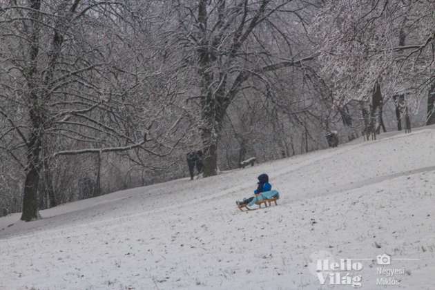 Csak egy bő hónapot késett ahhoz, hogy fehér karácsonyunk legyen, de végre megérkezett a hó Budapestre is. Ma délután már sokan örültek ennek, a budapestiek kedvelt kirándulóhelyén, Normafán.
