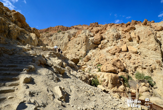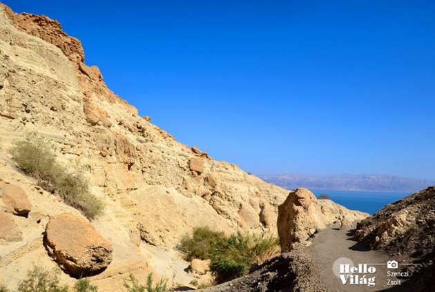 A kiépített ösvény vonalvezetése kellemes, így a séta közben élvezhetjük a bennünket körbe ölelő hegyek látványát. A Holt-tenger pompás sziluettje végig kísér bennünket és az a különleges tudat is ott motoszkálhat a fejünkben, hogy -345 méteren kirándulunk, ami valljuk be nem minden nap történik az emberrel.
