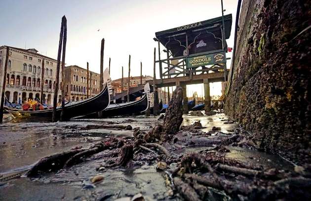 Velencében az apály már a második évben csökkentette olyan mértékben a vízszintet, hogy a város csatornái szinte víz nélkül maradtak. A turistáknak, akik a híres kék-zöld csatornákon való gondolázásra vágytak, sajnos csalódniuk kellett, hiszen az apály miatt a gondolák, a város elsődleges közlekedési eszközei a csatornák aljában maradt sártengerben sorakoztak. Az idei kivételesen alacsony vízszintet az abnormális árapályok okozták, melyeket az északkelet-olaszországban drasztikusan lecsökkent csapadékmennyiség eredményezett. Mivel a város csatornarendszerét elhanyagolták az utóbbi években, így most különösen látványos azok rossz állapota.